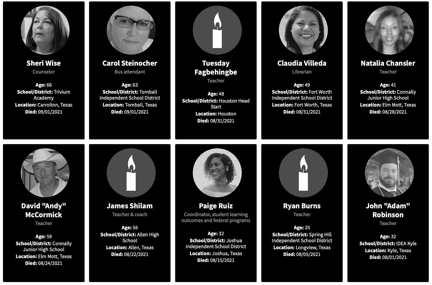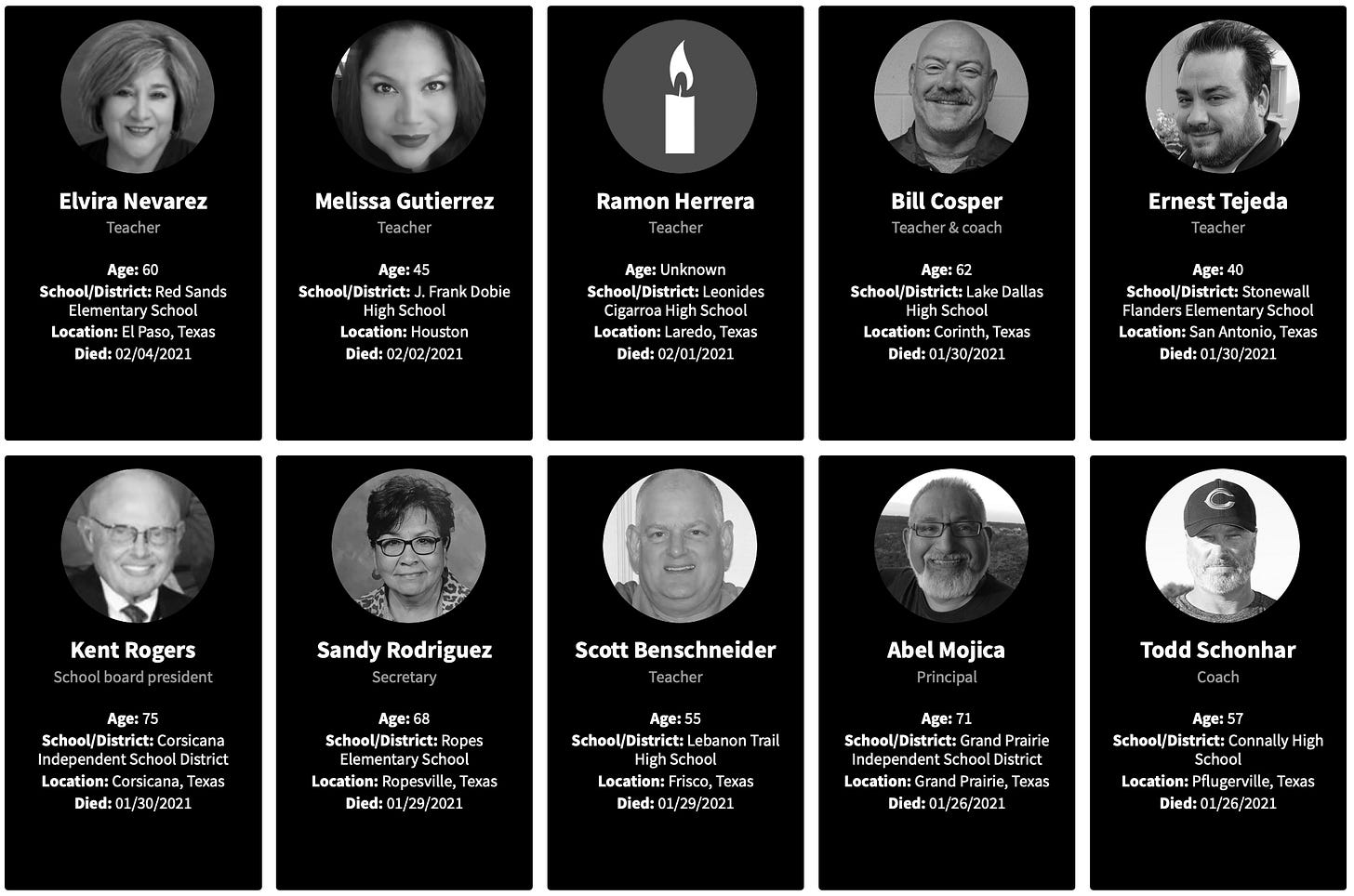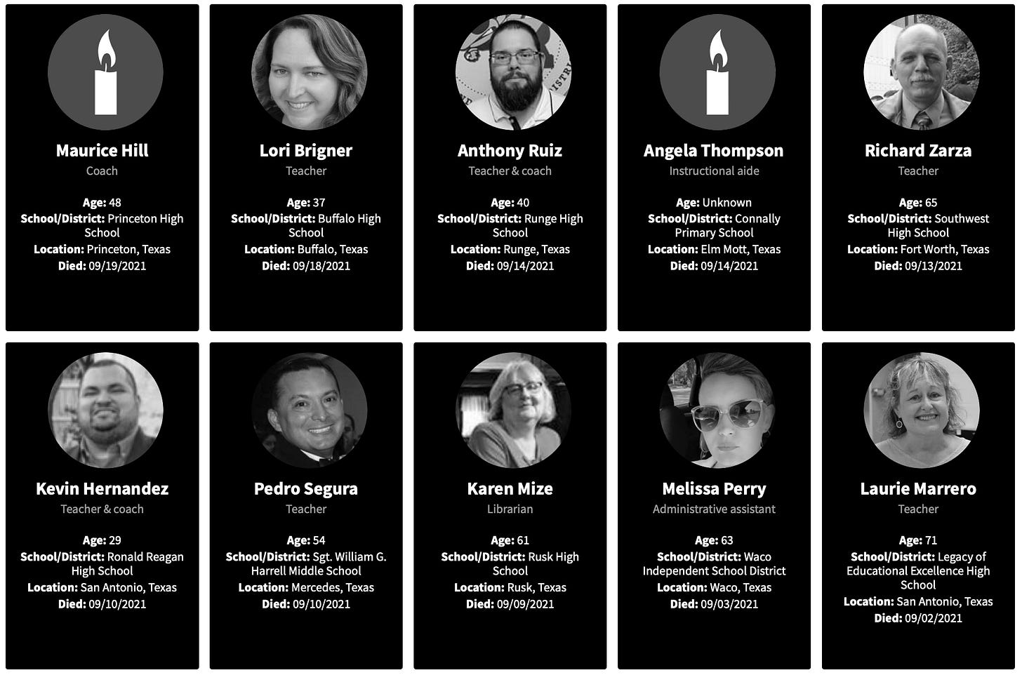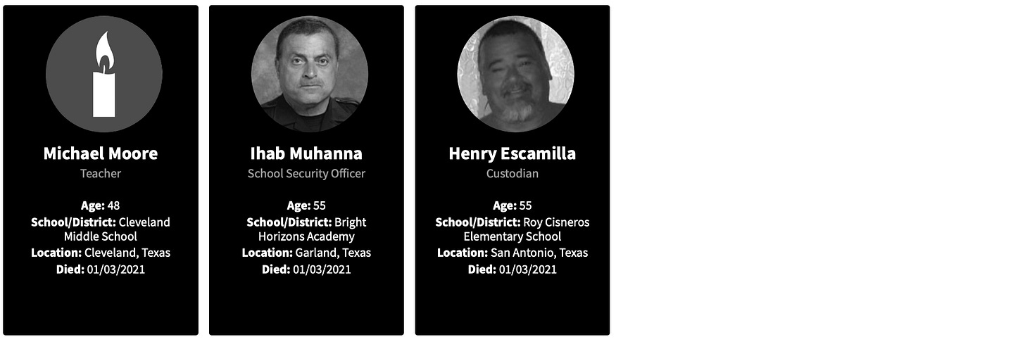 As I explored with the Georgia teachers, I will look at the reports of working teachers deaths for 2021.
