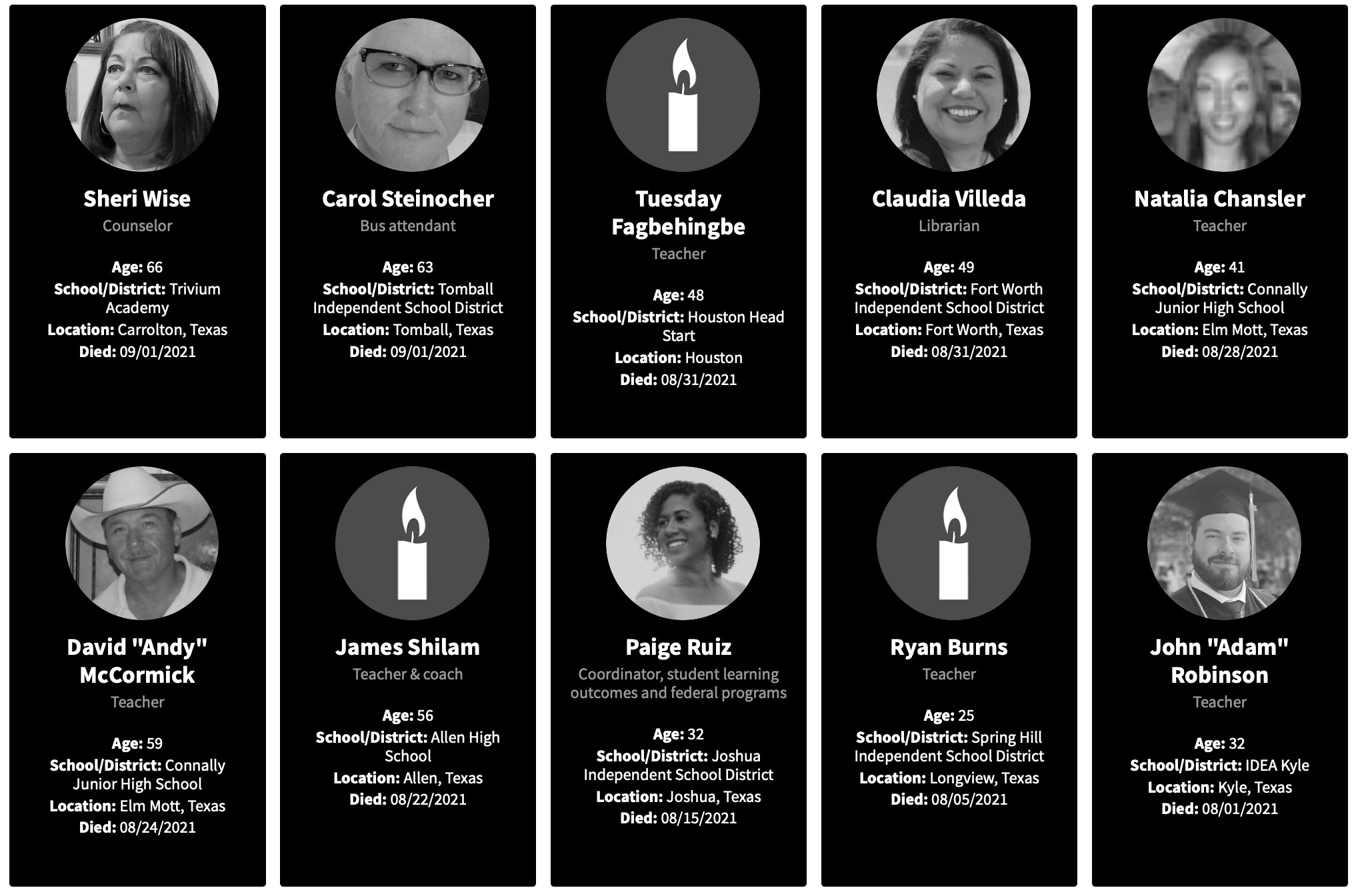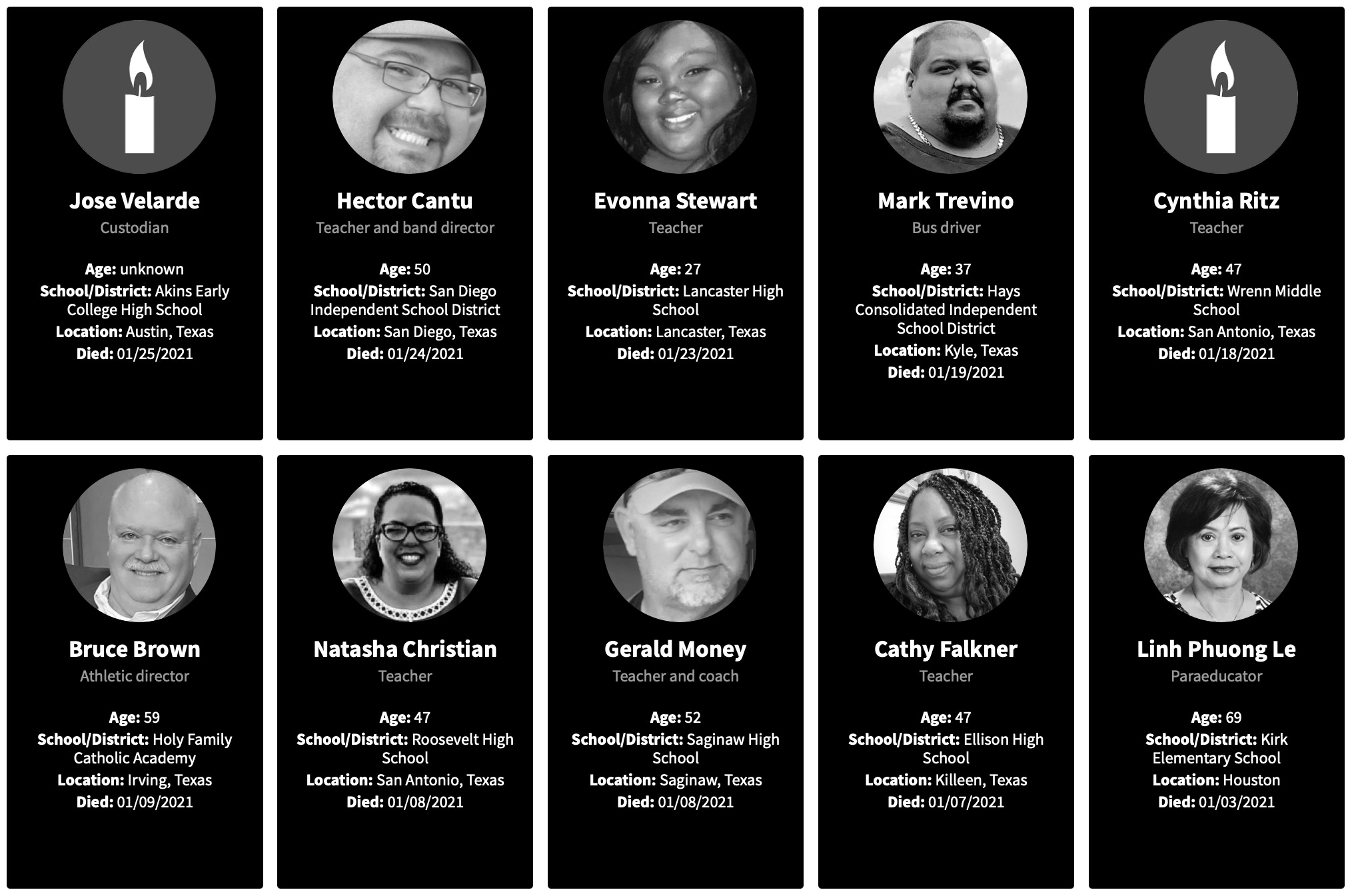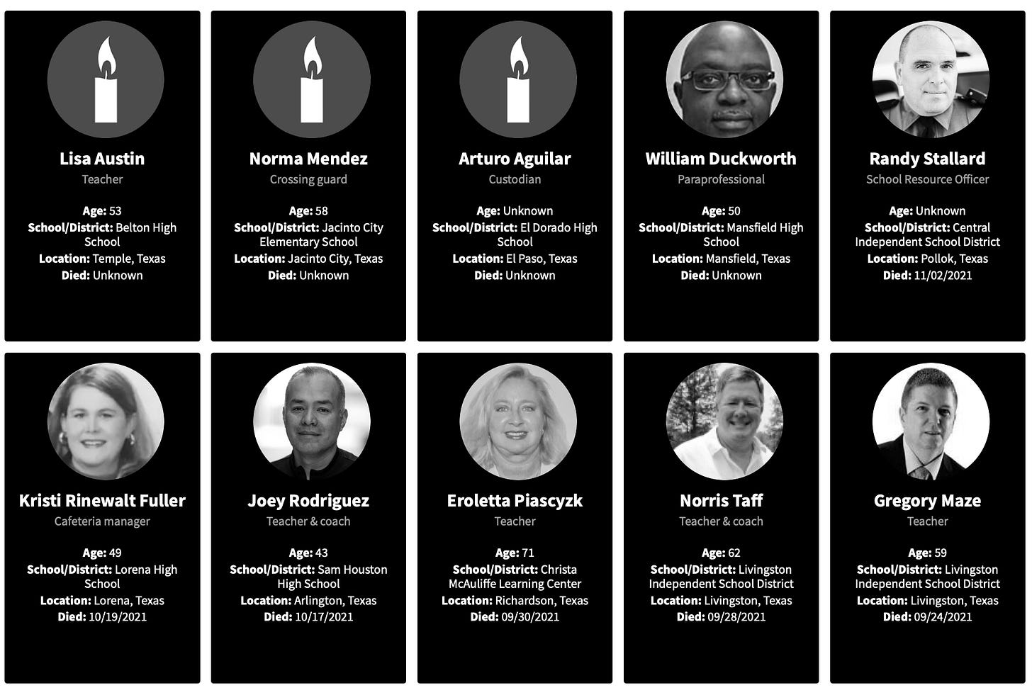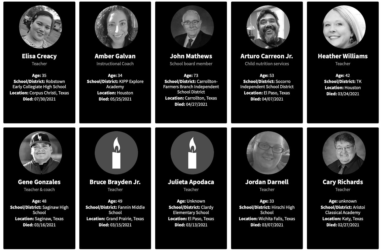 As I explored with the Georgia teachers, I will look at the reports of working teachers deaths for 2021.