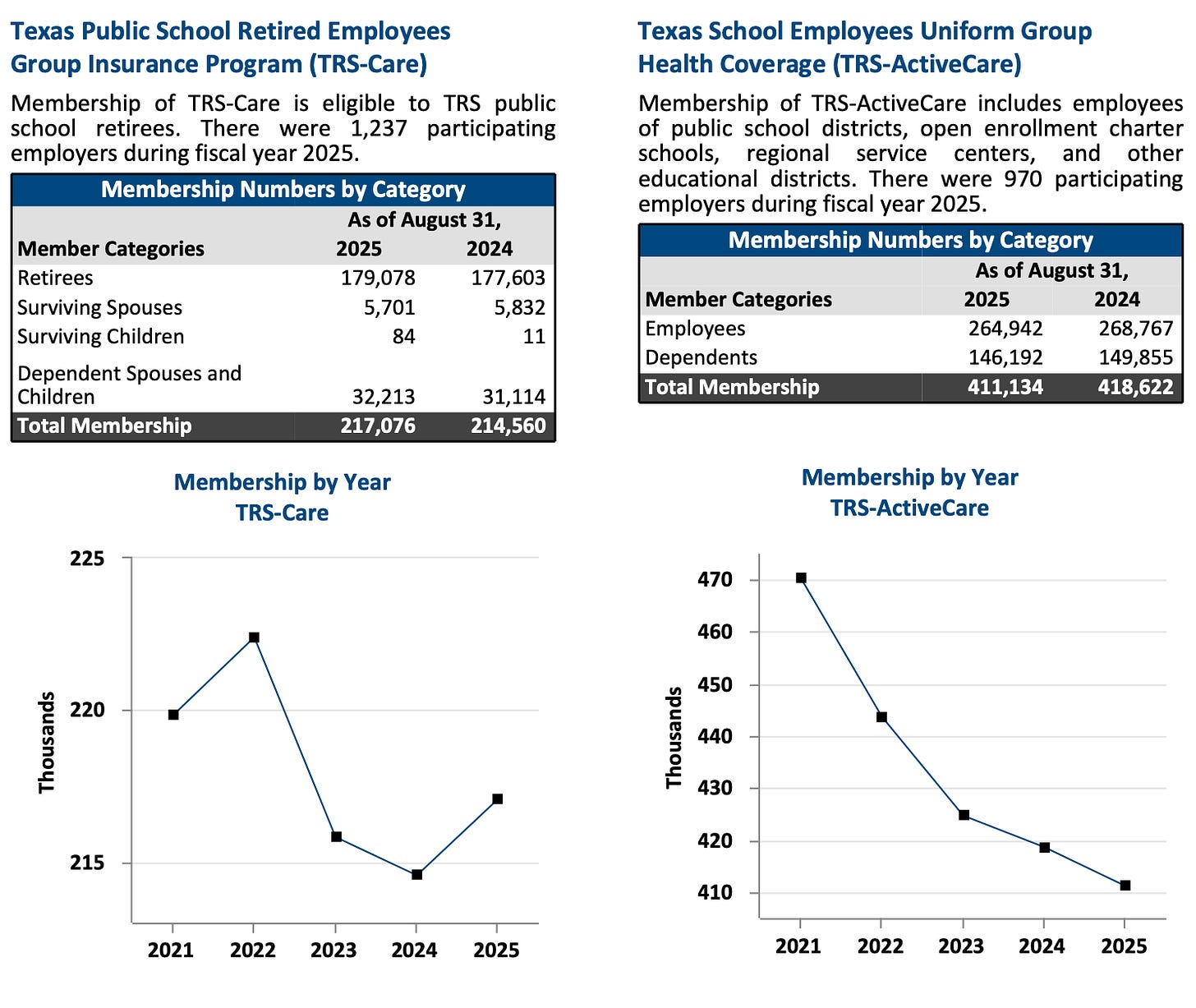 page 15 (Membership Information - TRS Health Care Membership by Year)