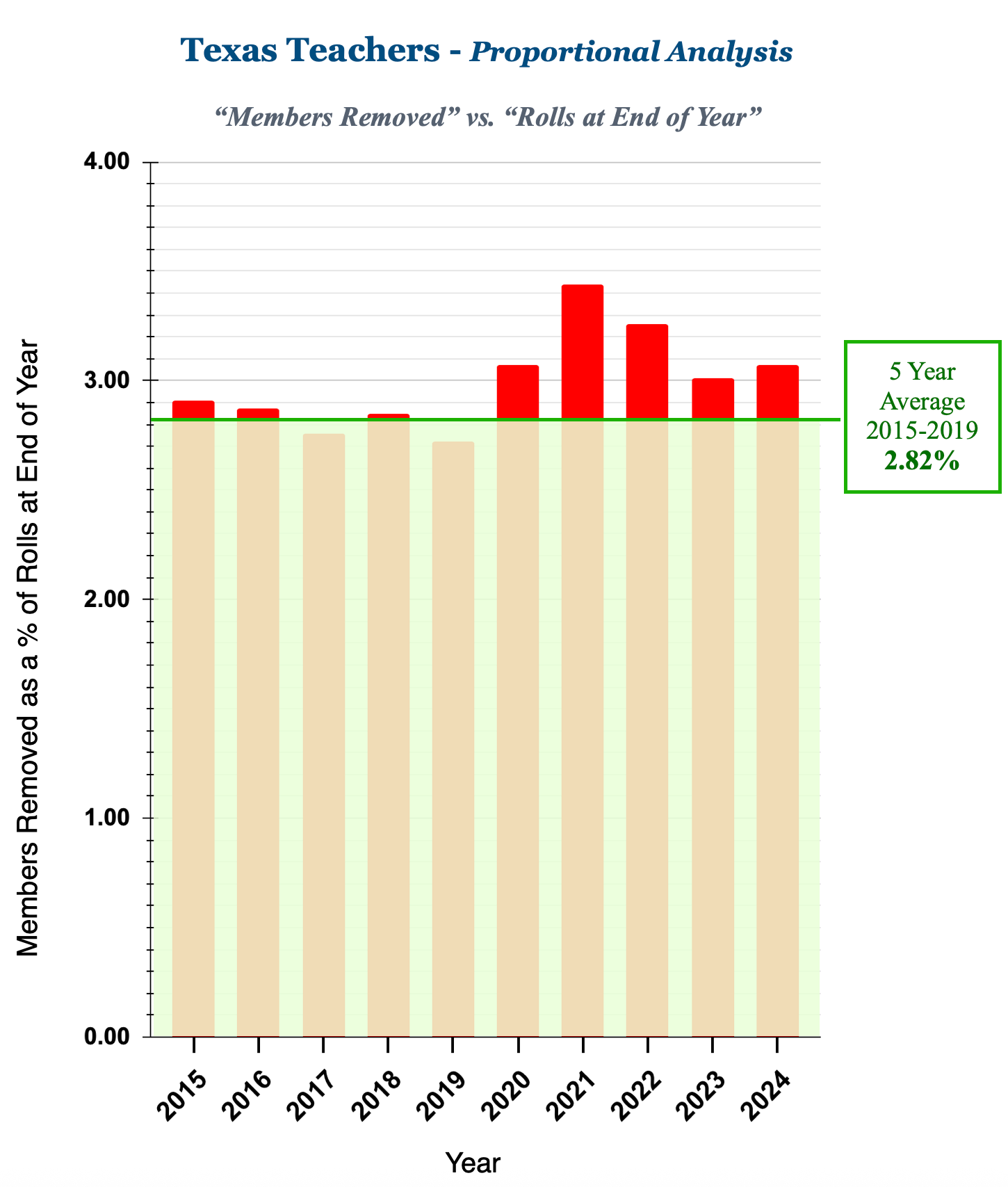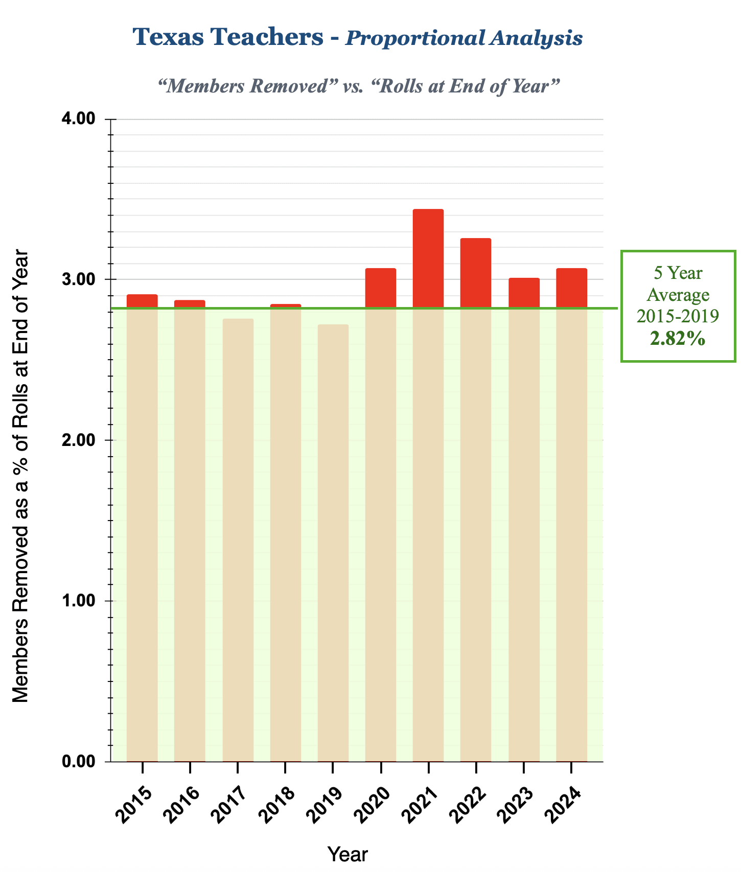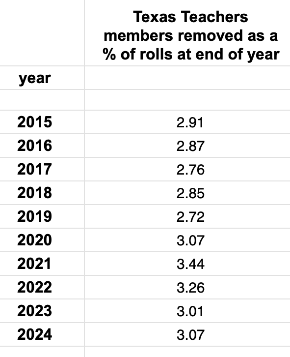 Proportional Analysis of members removed as a % of total members on the rolls.