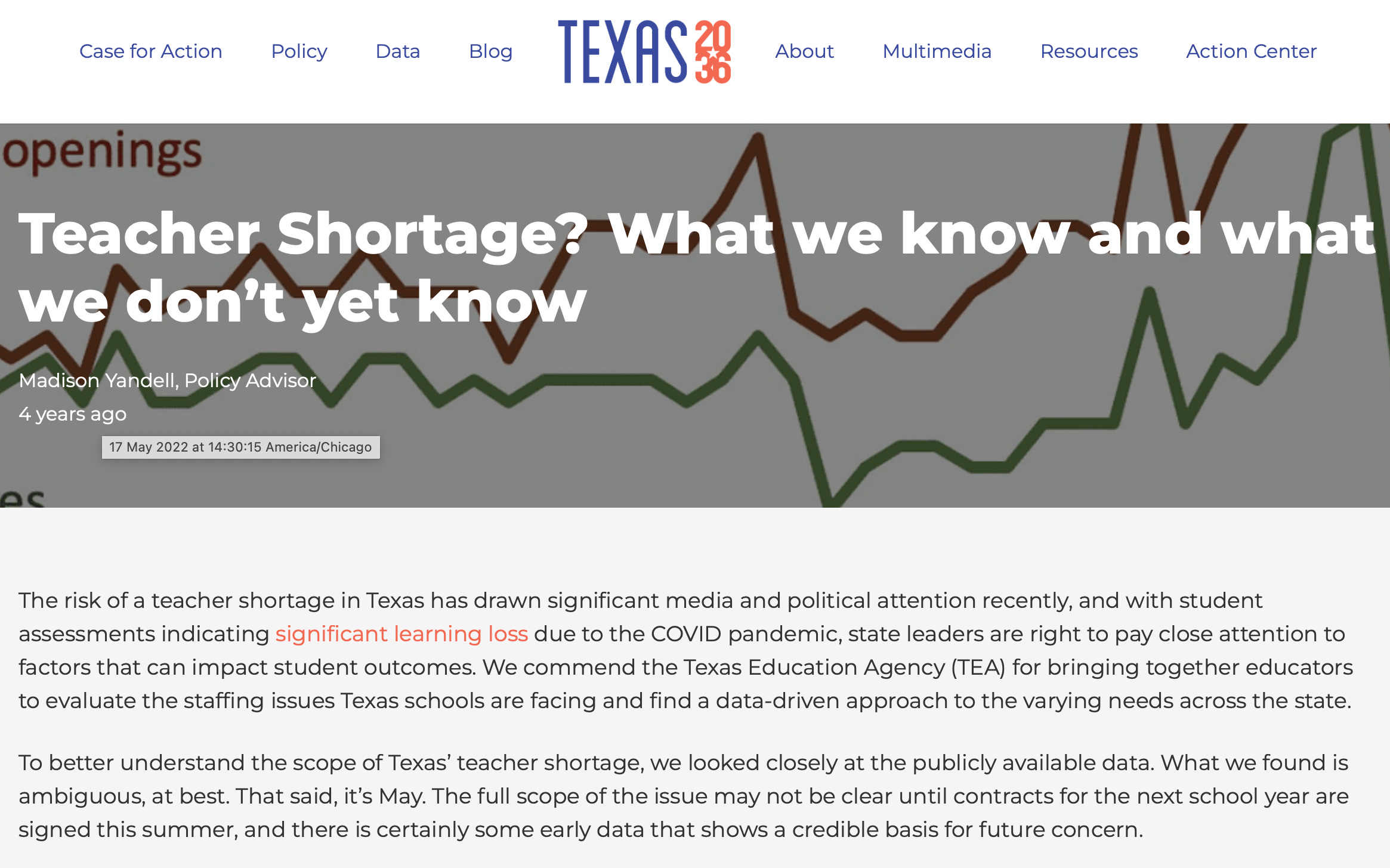 “The risk of a teacher shortage in Texas has drawn significant media and political attention recently, and with student assessments indicating significant learning loss due to the COVID pandemic, state leaders are right to pay close attention to factors that can impact student outcomes. We commend the Texas Education Agency (TEA) for bringing together educators to evaluate the staffing issues Texas schools are facing and find a data-driven approach to the varying needs across the state.