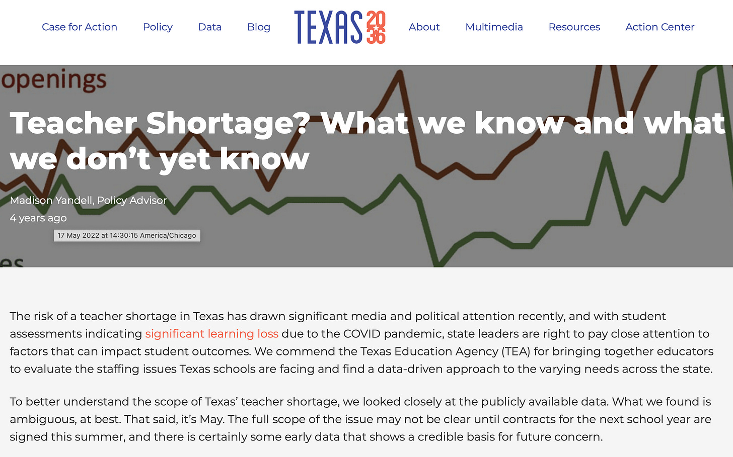 To better understand the scope of Texas’ teacher shortage, we looked closely at the publicly available data. What we found is ambiguous, at best. That said, it’s May. The full scope of the issue may not be clear until contracts for the next school year are signed this summer, and there is certainly some early data that shows a credible basis for future concern.”