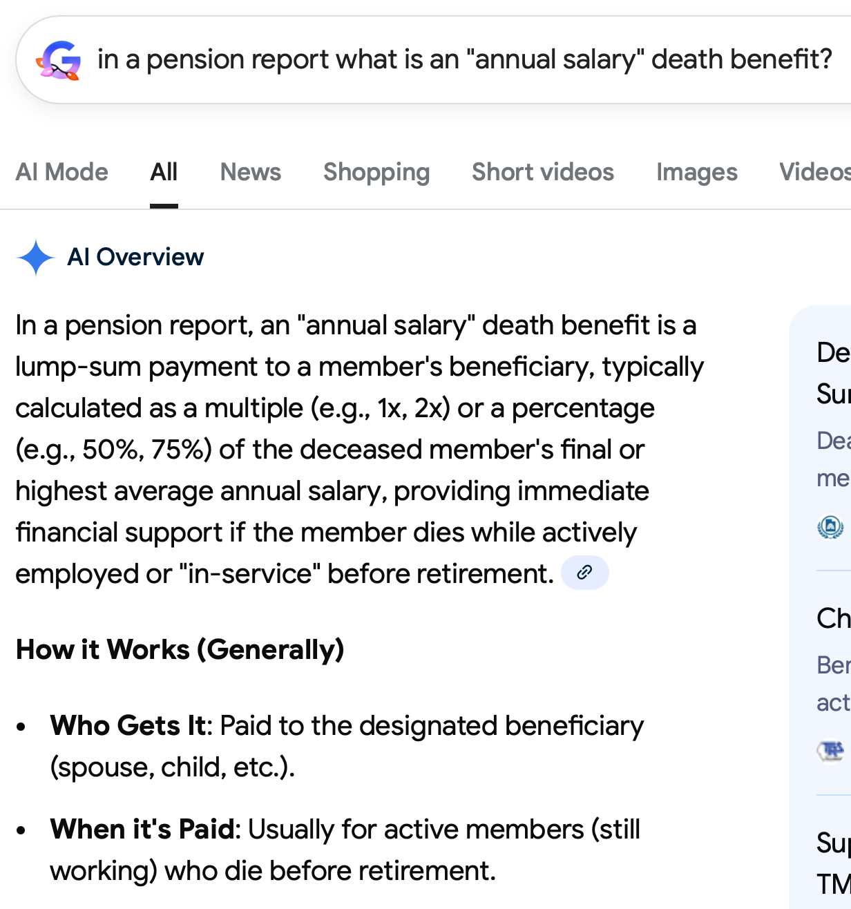 You will see my screenshot below from my query to Google on just what that means. But it really is mostly a benefit given to survivors when a working active member dies.