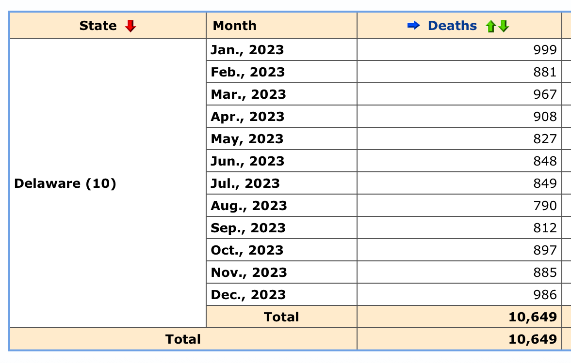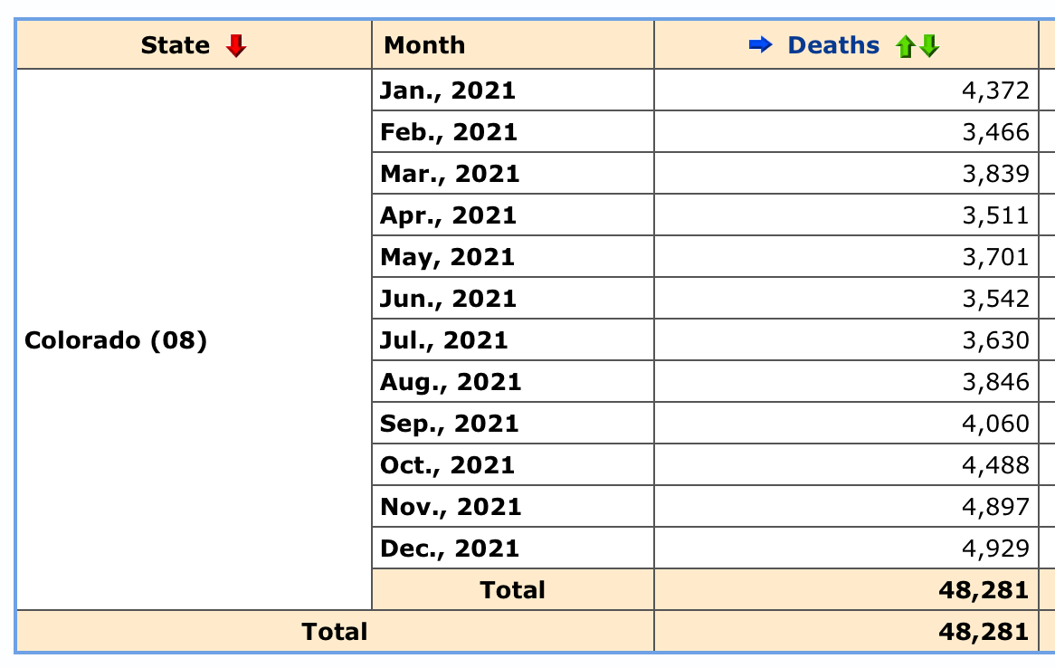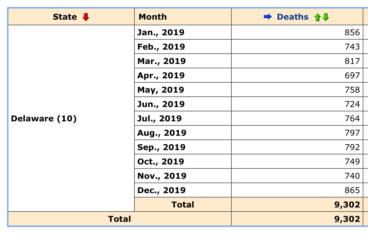 Since it has occurred to me that it is really, really nice to have official monthly data in order to compare events to the timeline of Covid, I am going to keep giving you that from state to state as I find it … a continuation of what I started here.