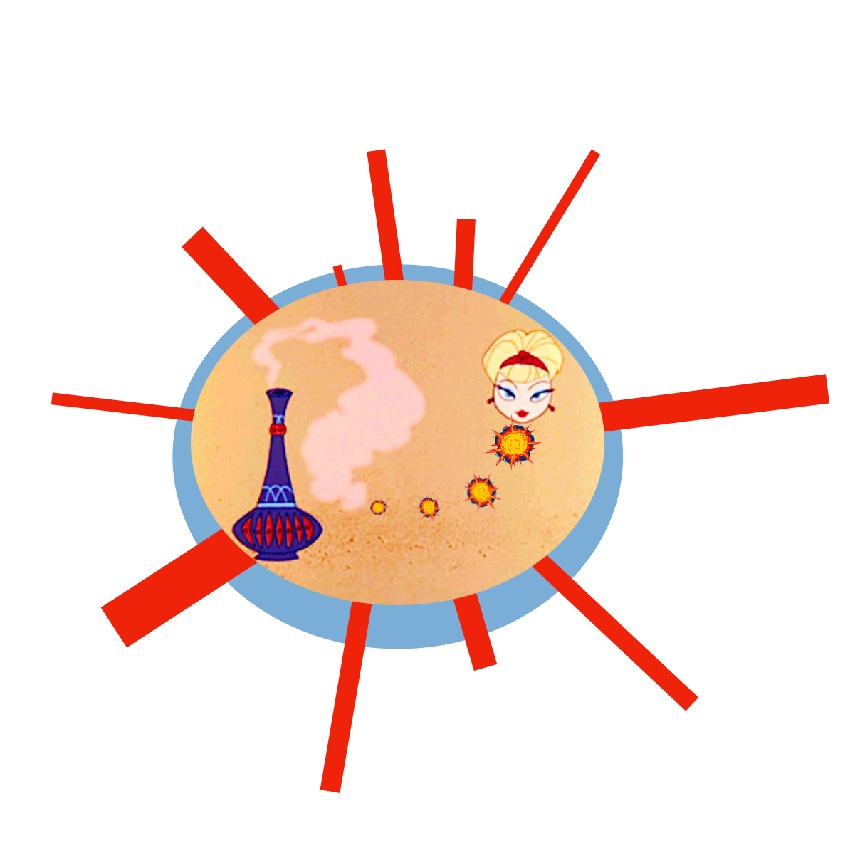 The image reminds me of the old sitcom “I Dream of Jeannie” -- is the genie out of the bottle?