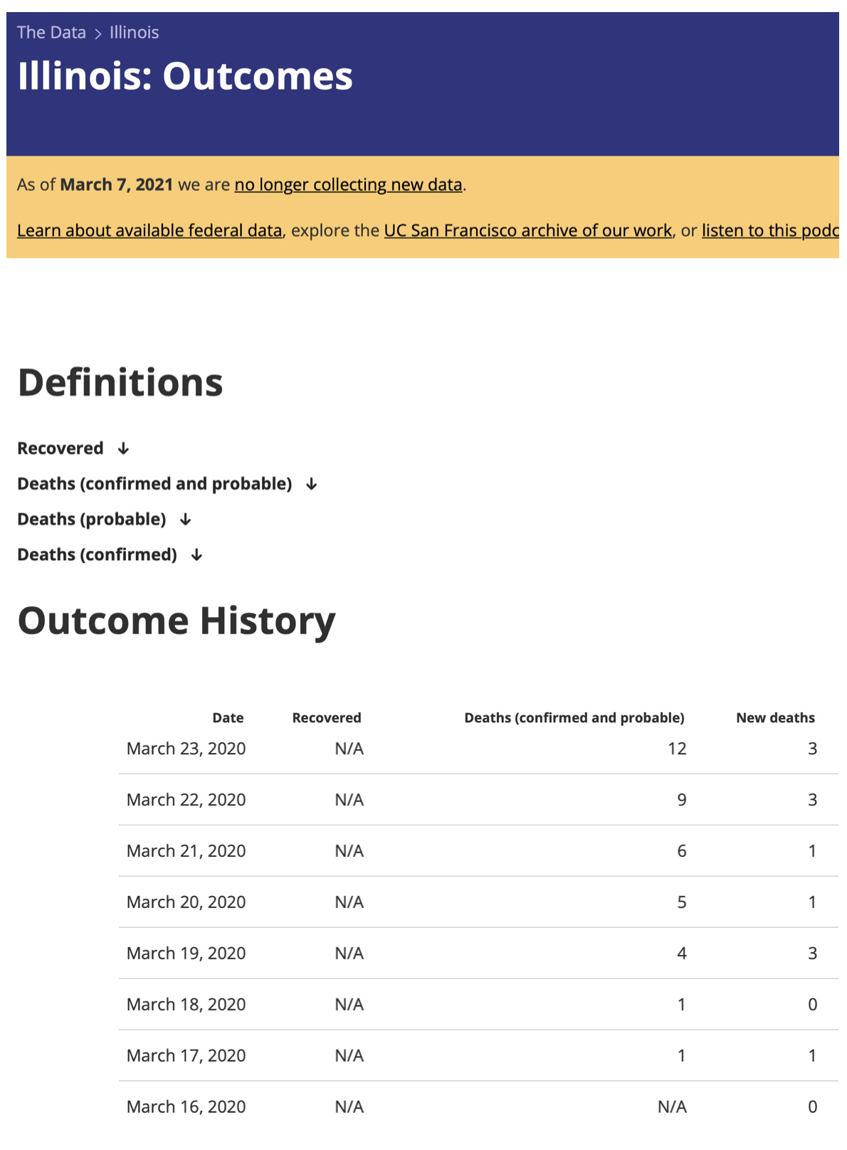 *in a strict delay window parameter, this would seem to say that the Surgeon General was freaking everyone out about 5 deaths in Illinois. But we will give him some special intel powers and say he knew about 12 deaths on March 23rd. The new deaths look to be averaging around 2 a day.