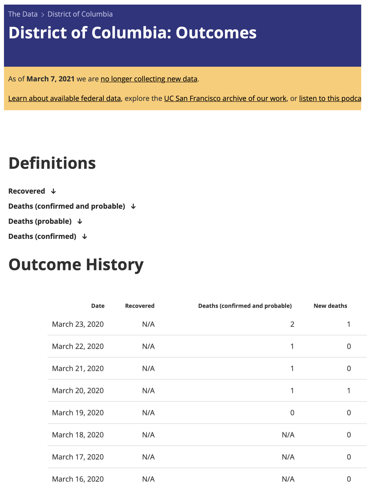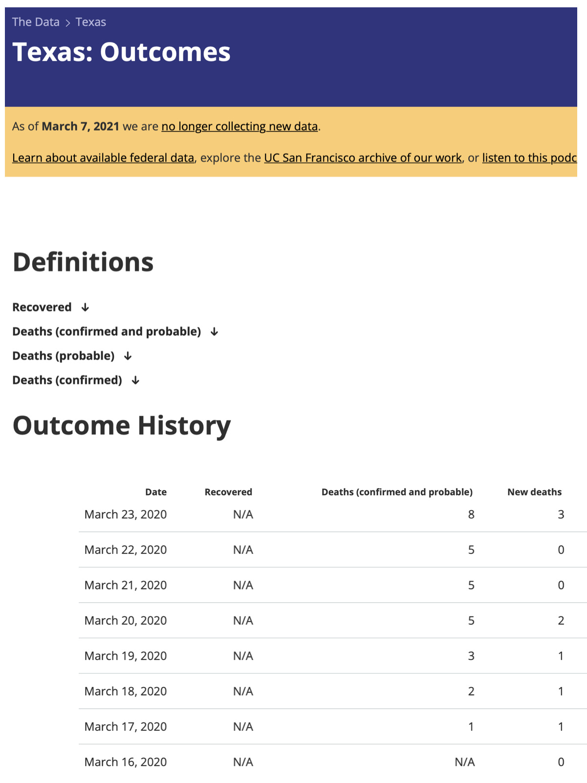 (***the following screenshots from the Covid Tracking Project are composites. They combine the location and column descriptions with later date ranges for ease of viewing.***)