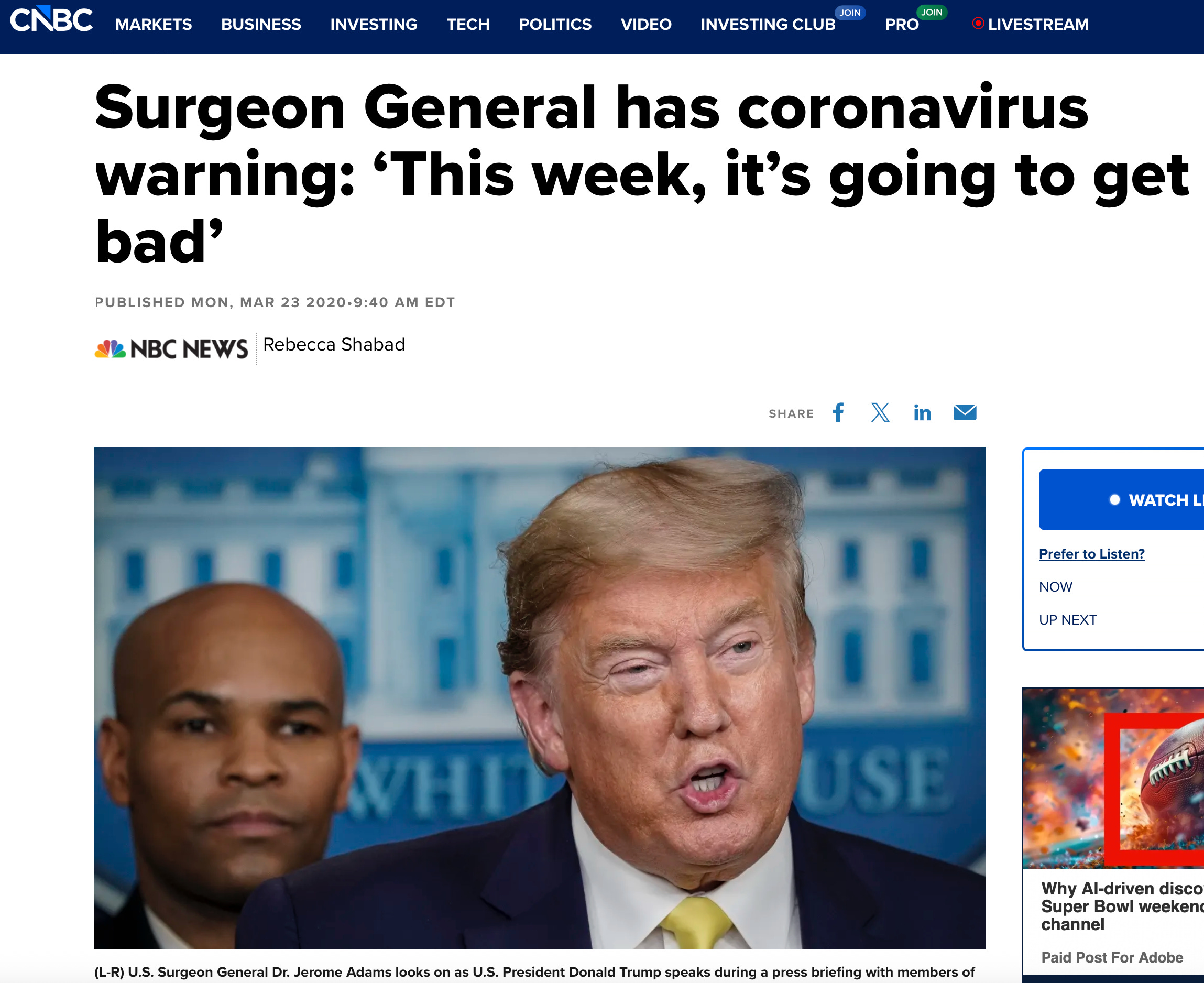 “We’re joined now live … Dr. Jerome Adams.”Dr. Jerome Adams: