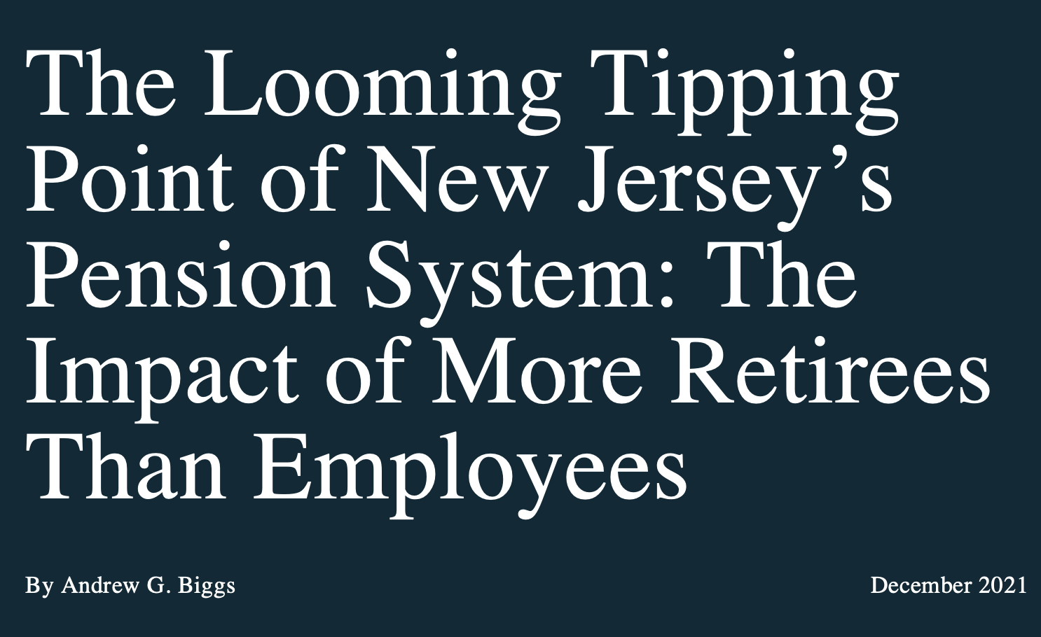 “While the data relied upon for this study confirm prior analyses of New Jersey’s Pension system underfunding, this study also reveals important comparative points and makes timely recommendations for policymakers who must deal with the future sustainability of both our state and local budgets. New Jersey lawmakers face difficult choices in order to bring the state’s public employee pensions back to financial sustainability since our state plans have suffered more significant financial deterioration than those of most other states …