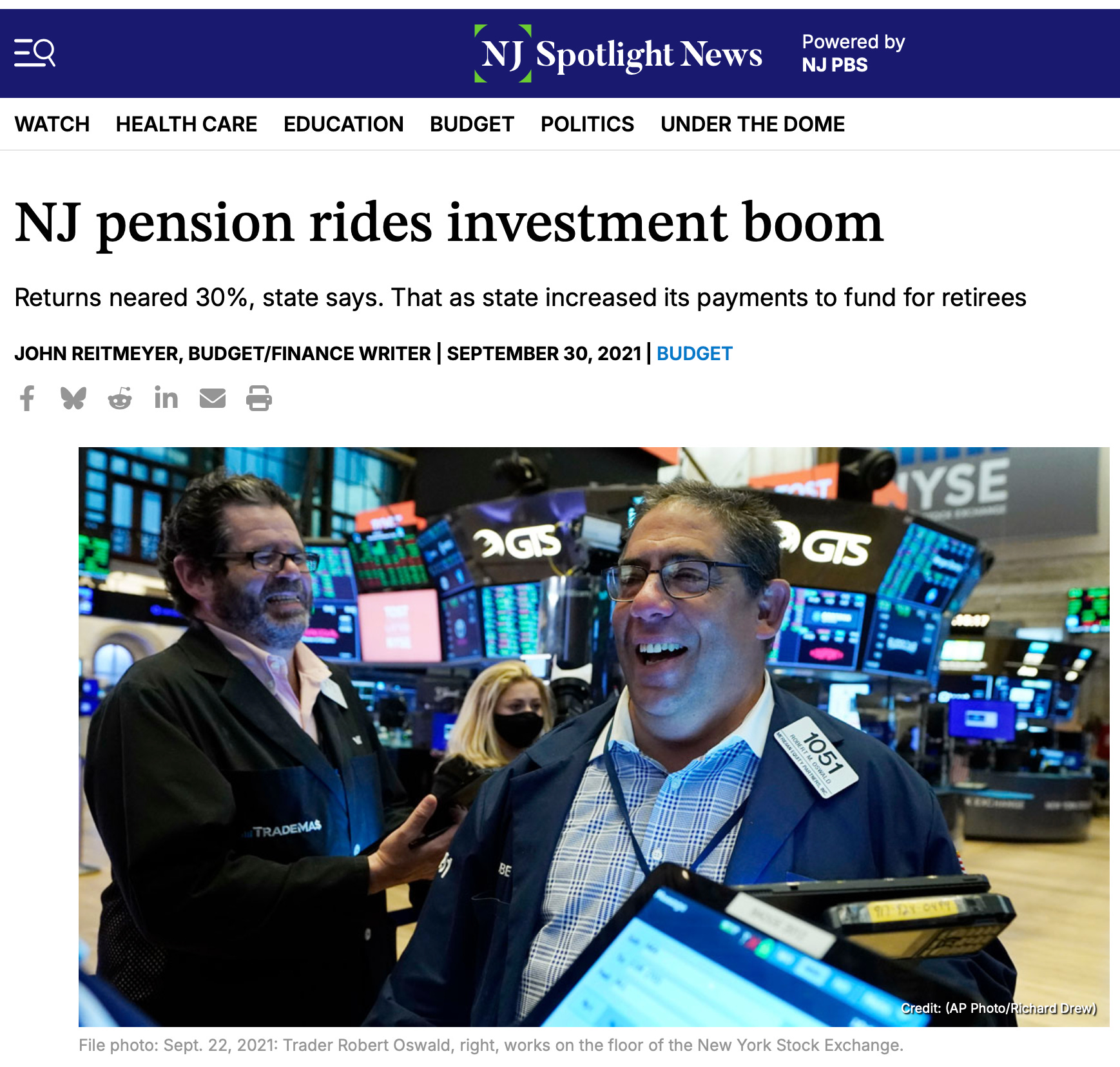 Though still subject to audit, the annual investment-return figures for the 2021 fiscal year are the highest annual returns that have been recorded by New Jersey’s pension fund managers over the past two decades, according to the Department of Treasury.”