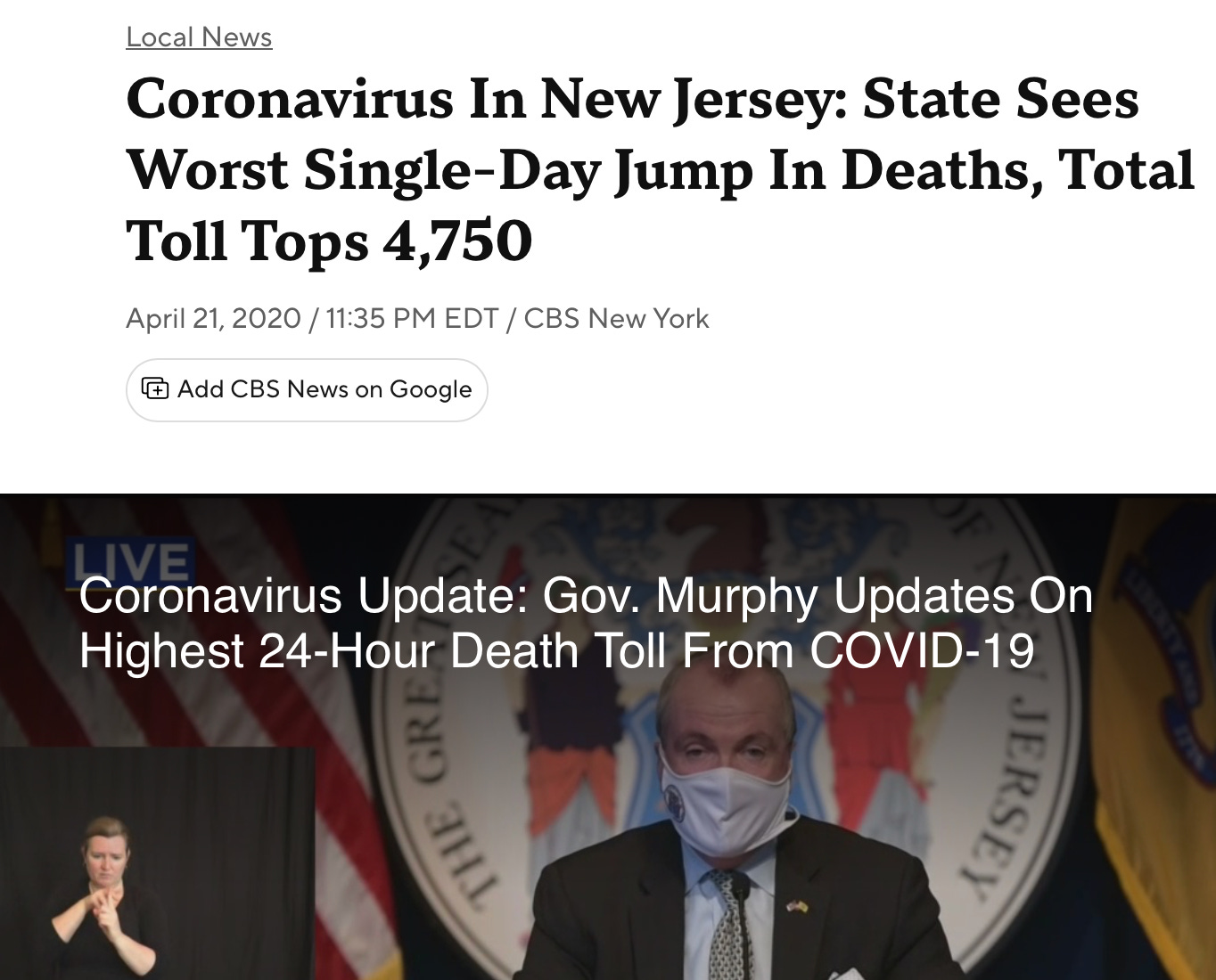 The resulting toll saw 379 dead due to coronavirus-related illnesses, the worse single-day toll since the outbreak began, putting the statewide total of 4,753.”