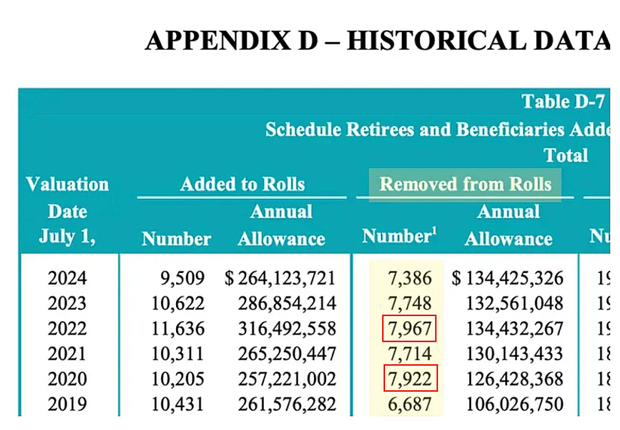 The above death benefit graph only covers the first group, PERS.