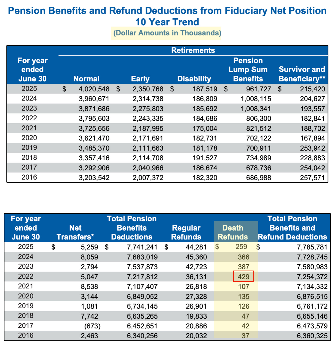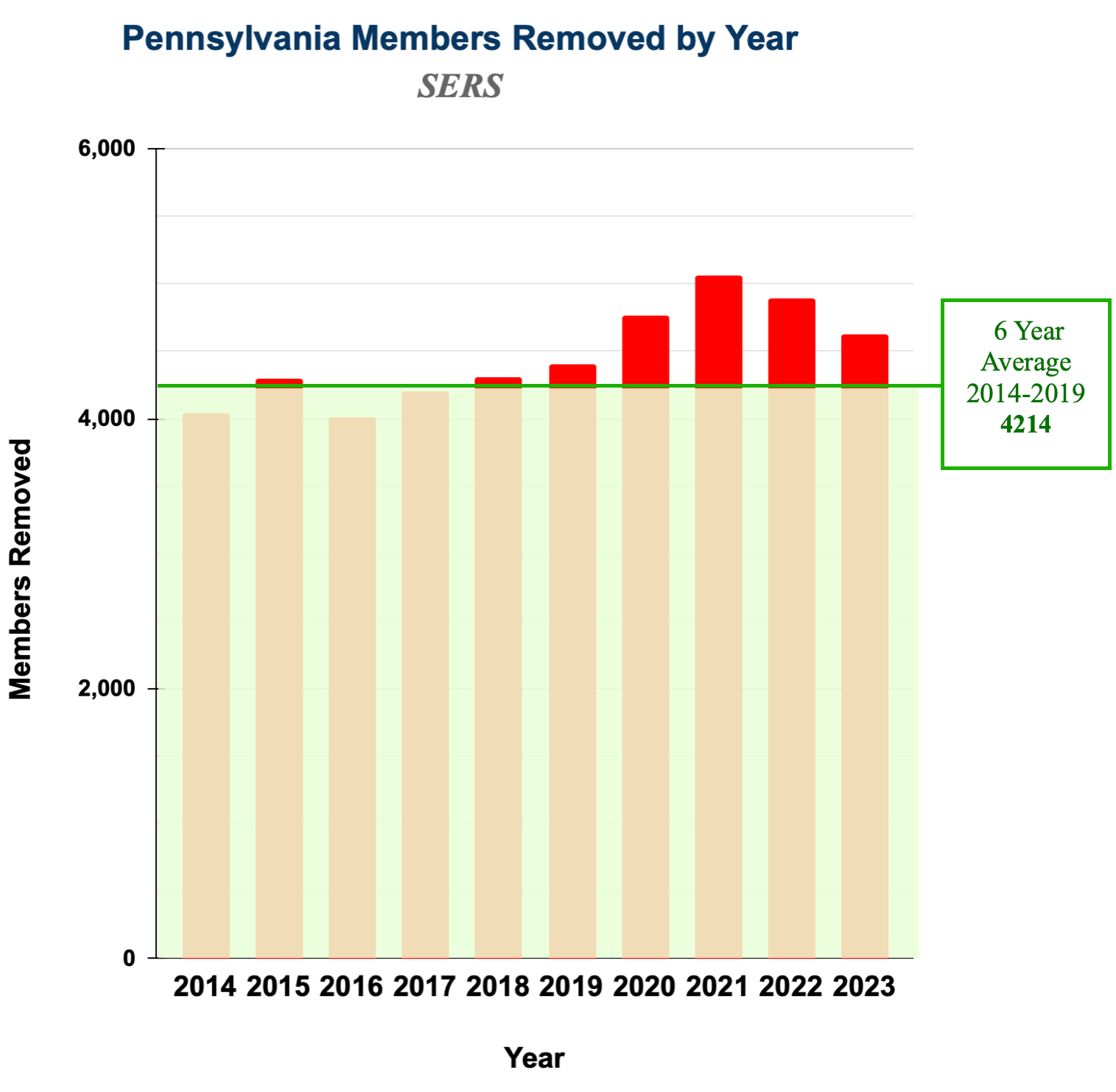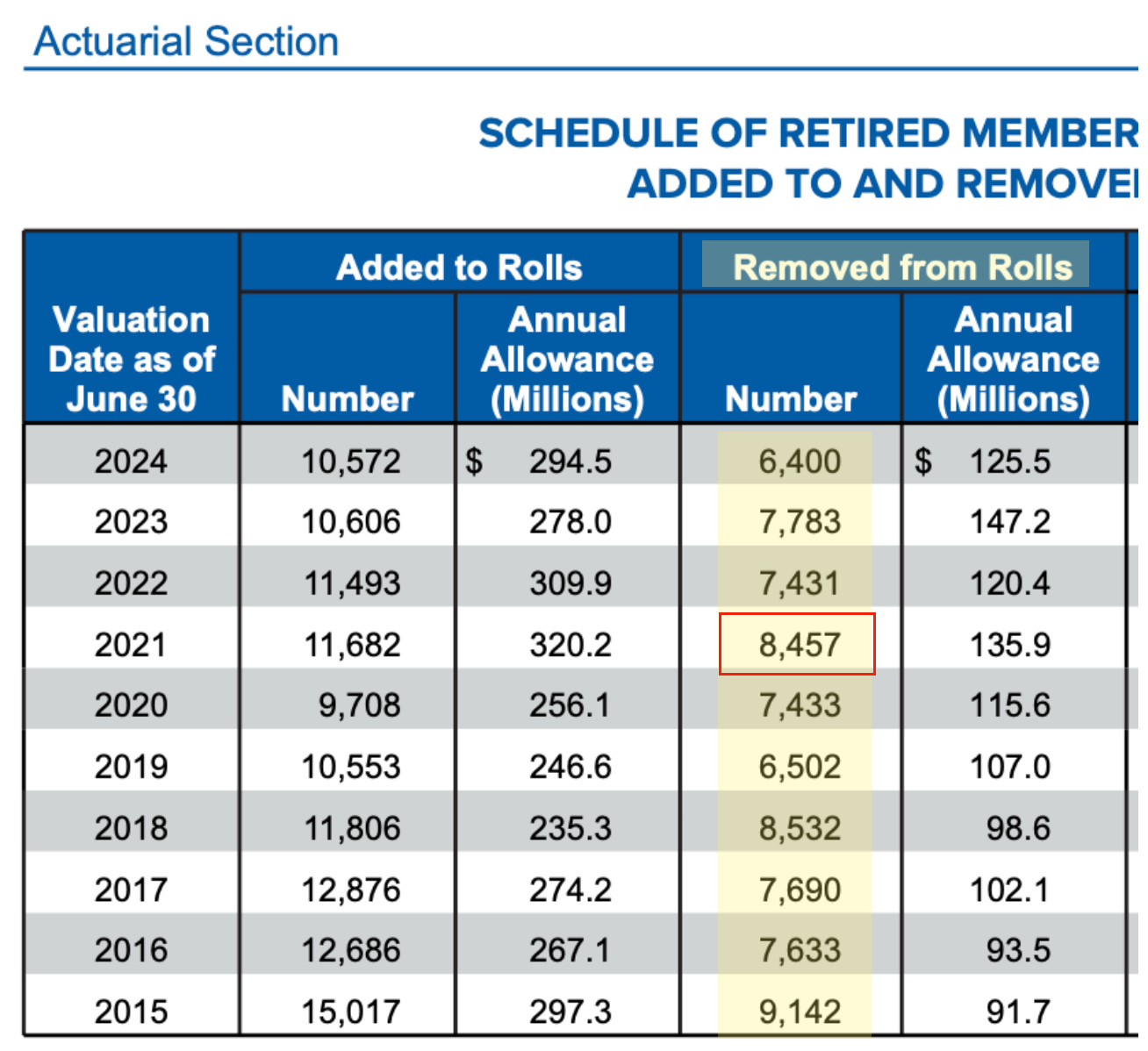 *do keep in mind on the above graph that SERS has a fiscal year ending on December 31st when comparing the mortality in 2020 to 2021. The no vaccine year (2020) had way less death benefits than the first with vaccine year (2021) … and 2022 kept going even higher!
