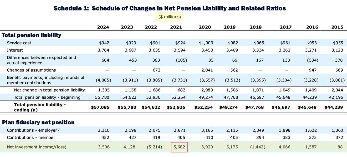 I know that table is pretty tiny, but SERS did not do quite as well. Looks like less than a 2 billion dollar swing from 2020 to 2021. Better than a loss.