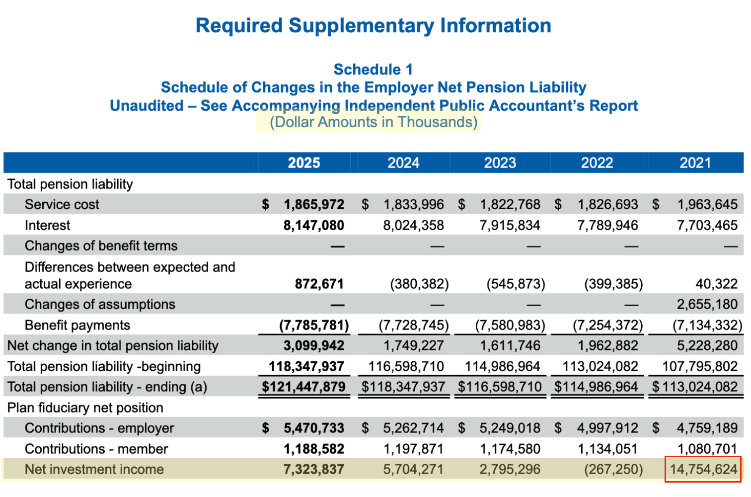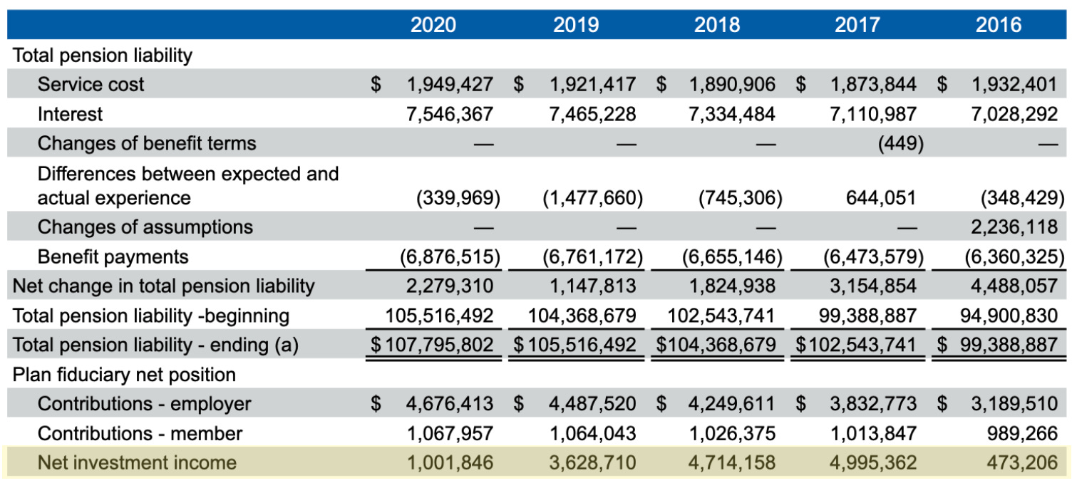 In the following year (fiscal year 2021) many of these same places had huge windfalls in their public employee pension plans due to historic investment gains.