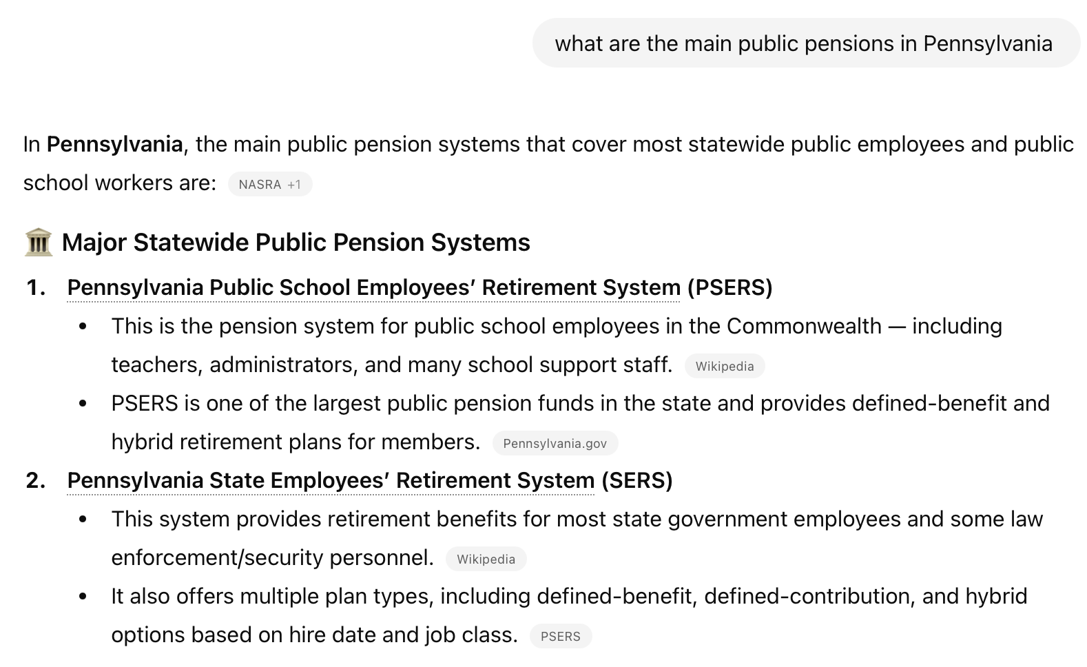 So according to my good friend ChatGPT, we would need to look at two main pension systems in Pennsylvania:
