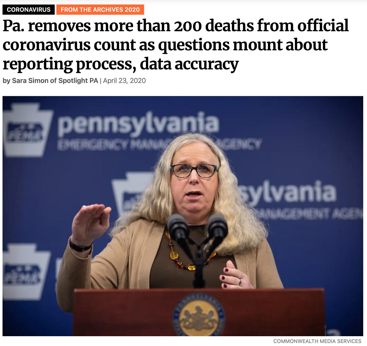 But facing mounting questions about the accuracy of the count, officials on Thursday removed more than 200 probable deaths from the tally, further complicating the state’s accounting of the pandemic. Health Secretary Rachel Levine said the change was made in an effort to be transparent.