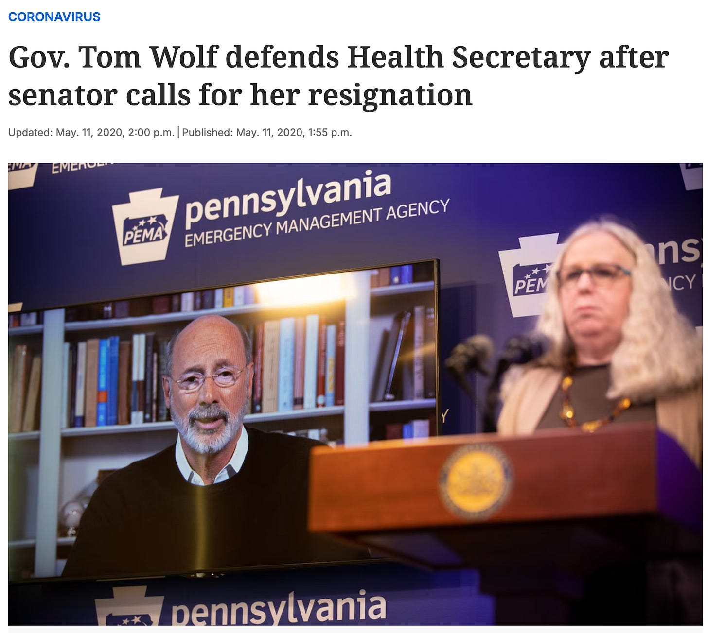 The Health Department said it followed that course as part of its overall strategy to preserve bed capacity in hospitals in the case of a surge of new cases, but Mastriano said Monday he believed Levine’s policy only exacerbated the situation in many of the state’s long-term care facilities, leading to unnecessary deaths …”
