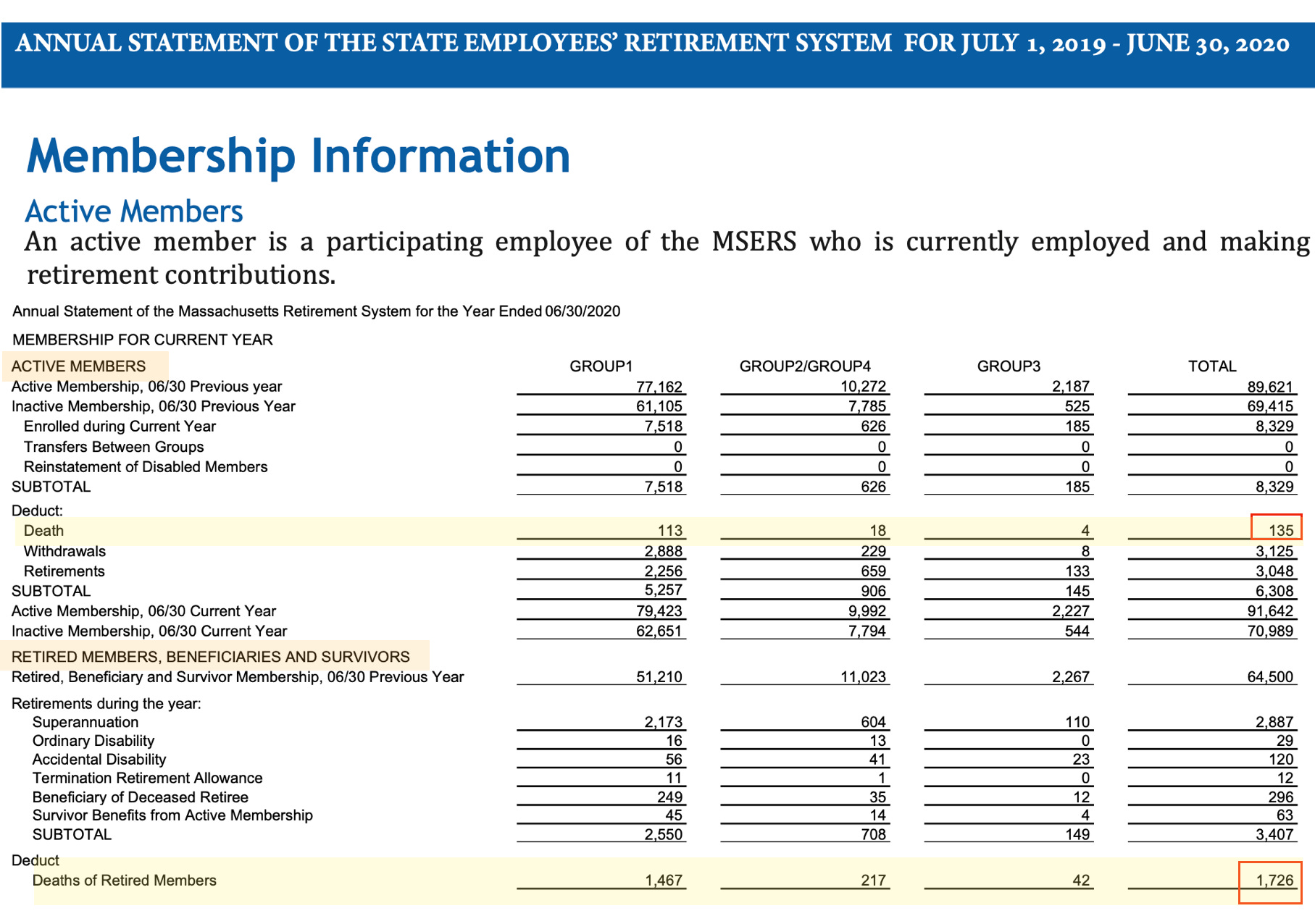 FY2020 total deaths in active and retired members: 1,861