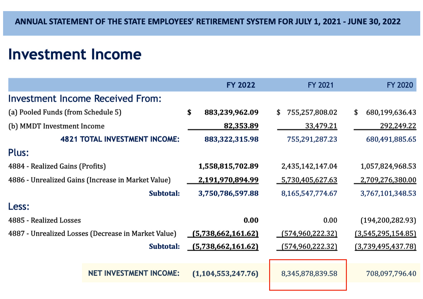 As you can see, the jump from FY2020’s net investment income to the one in FY2021 is a steep and dramatic one. Nearly an 8 billion dollar swing!
